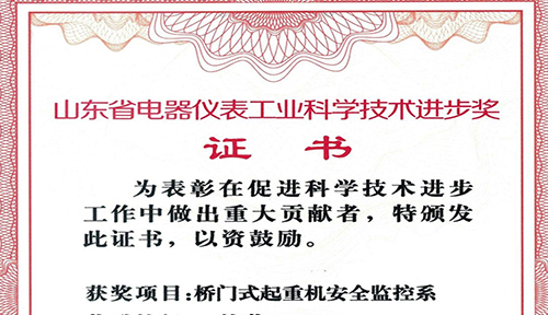 山东省电器仪表工业科学技术奖揭晓德鲁克桥门式起重机安全监控系统项目荣获一等奖