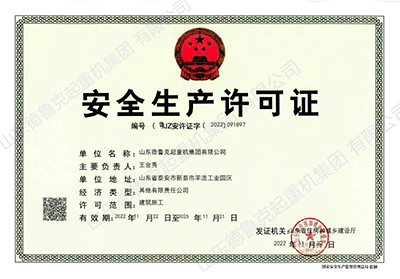 山东德鲁克起重机集团资质升级——安全生产许可证
