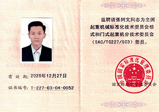 公司总经理张树文入选国标委起重机械技术委员会委员