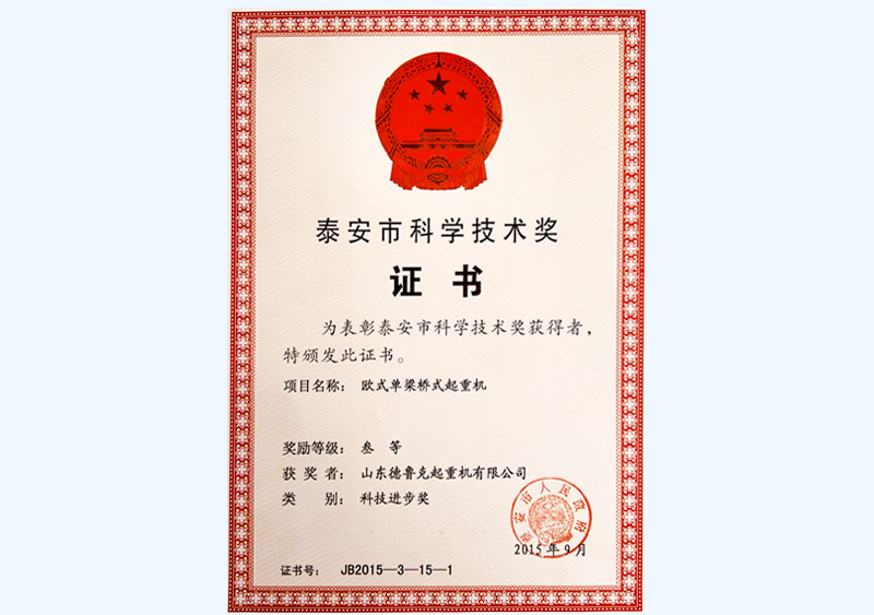 泰安市科学技术奖证书